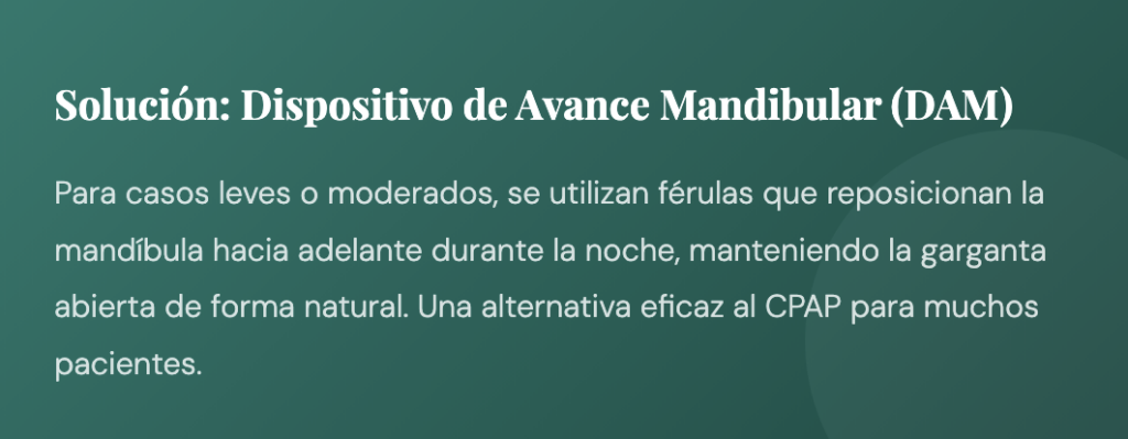 El error que hay que evitar: Tratar el bruxismo únicamente con una férula de descarga protege los dientes, pero ignora el problema de oxígeno subyacente. Es un parche necesario pero incompleto si no se acompaña de una valoración respiratoria.